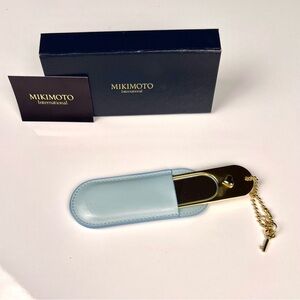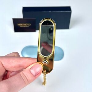 Authentic MIKIMOTO International gold tone metal small mirror with real pearl