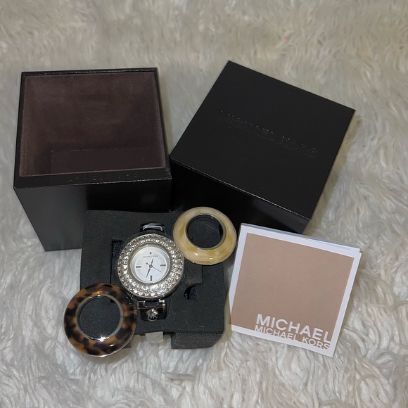Authentic MK Watch. You can change the sa face design. 3 choices. Comes with box, booklet, tag. In perfect condition.