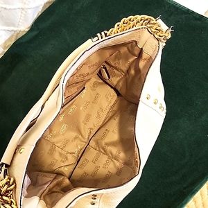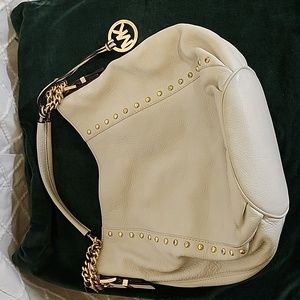 beautiful white MK handbag. gently used. please notice a few minor scuffs. it is a well made genuine leather bag.