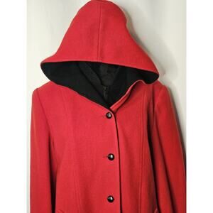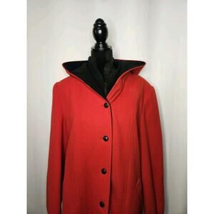 Authentic Mackintosh Vest Coat Wool Size 12 Vintage Made USA Hooded Red/Black