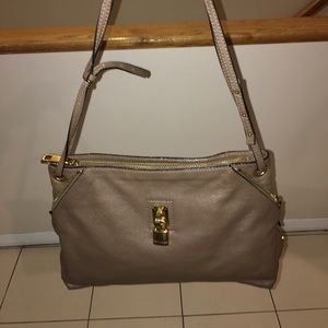 Taupe color Marc Jacobs Leather bag. Double handle, can be worn as messenger bag. Great condition.