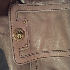 Tan leather shoulder bag by Marc by Marc Jacobs. These bags are great for daily use. High quality with plenty of space for just about anything. There is slight wear on the top of the bag near the closure snap which I have photographed. I'm sure with the right care and leather cleaner it could be removed. Let me know if you have any other questions! Thanks for looking :)