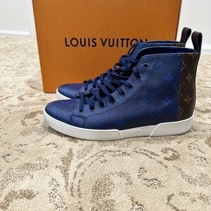 LV sneakers in great condition. Leather sneaker boot purchased from LV store. Comes with dust bag and original box. Size 7.5 Euro LV sizing, equivalent to 9 US.