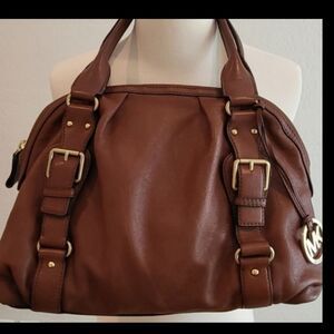 Authentic Michael Kors Bedford Pebbled Leather Satchel In Cognac