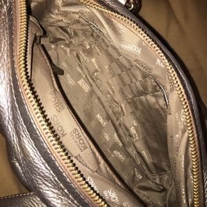 Michael Kors authentic bronze purse. Shoulder bag. Great for any use. 2 outside small compartments and plenty of room inside. NEVER WORN AWESOME DEAL. NO BAG OR DUSTER