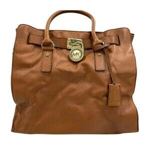 Up for sale is a 100% authentic Michael Kors Hamilton Large Tote Bag in a beautiful brown leather finish. This stylish and spacious bag features the classic MK padlock, gold-tone hardware, and durable leather constructionperfect for everyday use or special occasions.