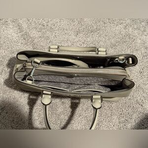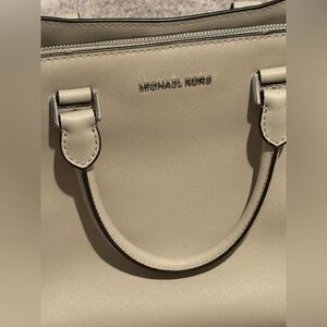 Additional Comments: Does include a crossbody strap. Bag is used and does have some light jean marks as pictured. Aside from that, it was well taken care of. Color in the photo is not the best depiction - it is a tan/gray bag.