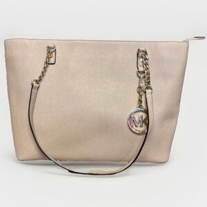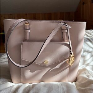 Authentic Michael Kors handbag with strap. Pink and beige. Overall condition is good. Normal wear and tear.