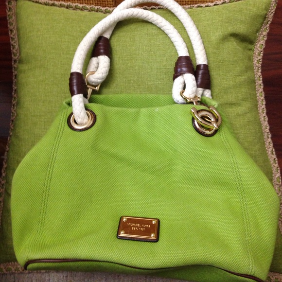 Authentic Mikhael kors green summer bag. Well maintained! Clean inside and out! Its has 5 pockets inside. Used only once! Small stain at the back, barely noticeable. Fabric bag. Make an offer!
