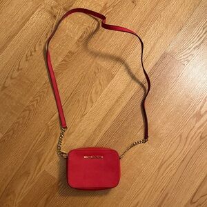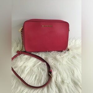 authentic, Michael kors, monogram red handbag. more of like a cranberry color slightly used willing to negotiate all offers