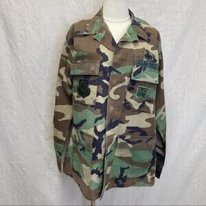 Authentic Military camo ripstop shirt jacket shacket with patches size Medium