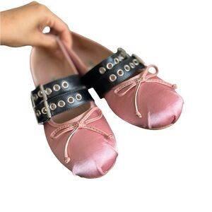 Authentic Miu Miu Pink Satin Ballet Ballerina Flats Slip Ons