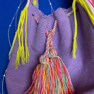 Handmade Colombian Purple Tote for Women! Cabo Wayuu Mochila Bags are intricate in their designs, can take approx. 18-20 days to wave. Hand Woven Strap using woven one thread. Handmade in South America by the indigenous Wayuu people. Fabric Type Cotton. Shoulder bag. Measurements: Height: 11 inches, Length: 15 inches, Width: 10 inches.