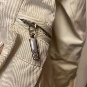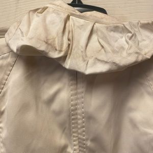 Wrinkles from being in bag belt is missing must be cleaned (dirt stained on collar and sleeve