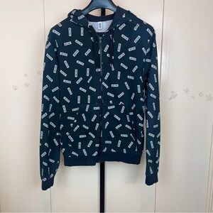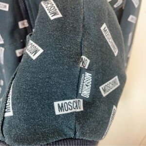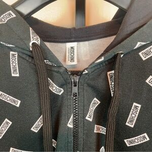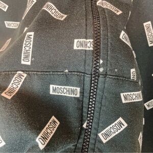 Authentic Moschino Repeat Logo Print Zip Up Hoodie Black
