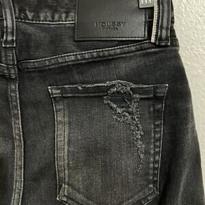 Authentic Moussy VTG Jeans 28 Black High Rise Straight Leg Raw Edge Distressed