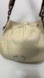 Elegant Mulberry bag in cream leather. Features tan leather handles. Spacious interior with classic design.