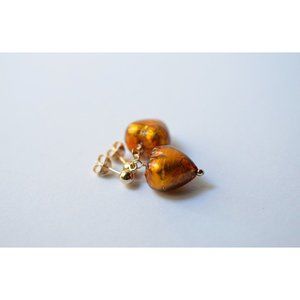 Venetian 24 kt gold foil Handmade Puffy Heart Bead securely wire wrapped and attached to the beautiful GF studs. Excellent gift idea!