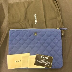 Authentic NEW CHANEL Quilted jersey blue medium pouch