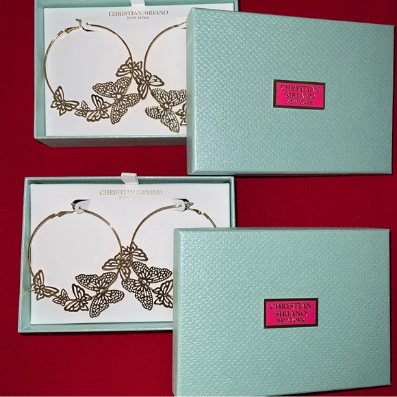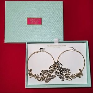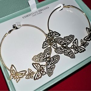 Earrings: 2 Gold-Tone Hoops - Featuring Butterfly Designs on each hoop (as shown in picture)