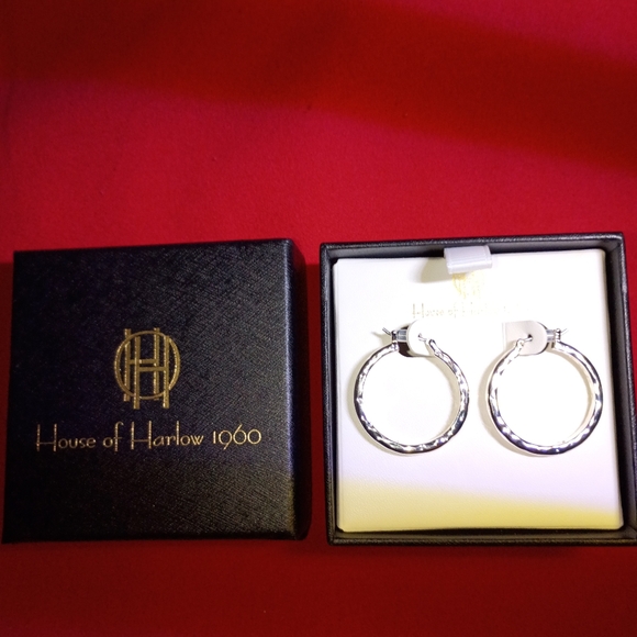 Elegant silver hoop earrings by House of Harlow 1960. Perfect for any occasion.