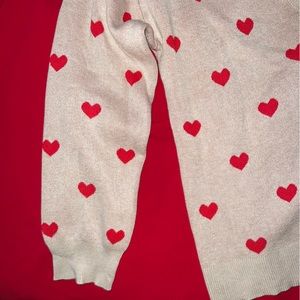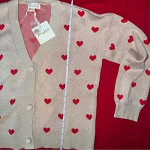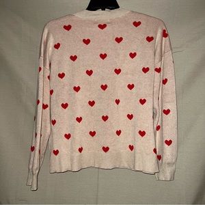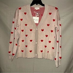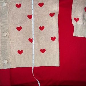 Cardigan Sweater Heart ❤️ Print Red Beige. NWT