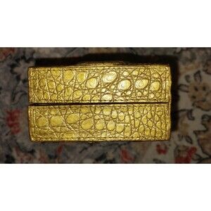 Authentic Nancy Gonzalez Light Metallic Gold Genuine Crocodile Clutch Box Bag