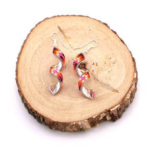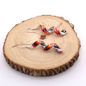 Authentic Native American Spiral Beaded Dangle Earrings Handcrafted Jewelry**