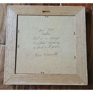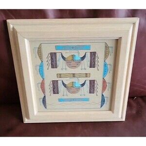 This authentic Navajo sand art painting in light oak frame is 11" x 11" and signed by the artist, Rosie Manuelito.