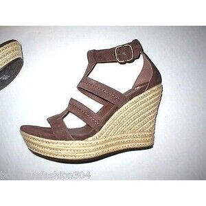 Authentic New Womens 9 9.5 10 UGG Wedge Sandals Platform Raffia Dark Brown Shoes