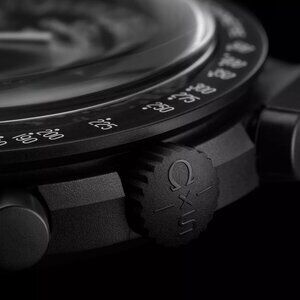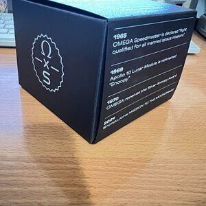 Referencing the full moon, this non-limited model boasts an all-white color scheme. It features a Bioceramic case, crown and pushers as well as a VELCRO® strap. The chronograph seconds hand, subdial hands, and tachymeter scale are in black. The subdials and bezel are in white. This model stands out with its moon phase function, arguably the most poetic of all watch complications. Snoopy who has been associated with human space missions since the 1960s, is featured lying on the moon on the moon phase disc, which rotates in the subdial set at 2 o’clock. Under UV light, a hidden quote from a Snoopy comic strip nestled amidst crescent moons and stars, is revealed on the unique subdial. All dials in the collection carry the OMEGA X Swatch branding, the iconic Speedmaster logo and the MoonSwatch logo. The box-shaped biosourced glass construction, the etched "S" in the center of the glass referencing the Swatch logo, the fine
