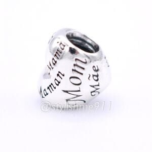 Design: Sterling Silver Heart Mom Mum Mama Mae Maman Charm
