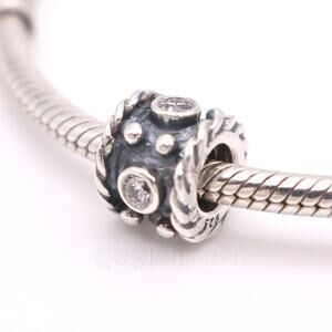 Authentic PANDORA Sterling Silver Abstract Oxidized Charm with cubic zirconia, 925 ALE Stamp / Retired