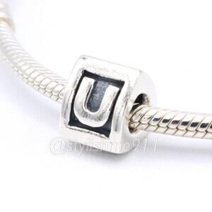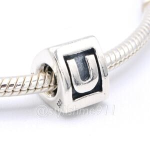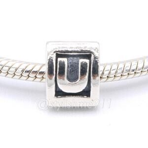 Authentic PANDORA Retired Sterling Silver The three-sided Alphabet Bead - Letter U, 925 ALE Stamp