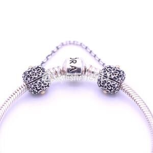 The Bouquet Safety Chain Clip is detailed with heavily oxidized flowers. The clip endings allow this safety chin to be added or removed from any Pandora bracelet with ease.