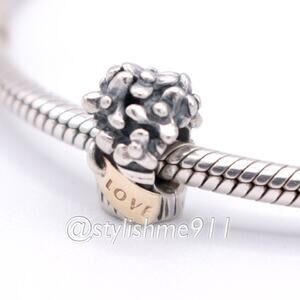 Retired Sterling Silver Flower Bouquet Bead with 14K Gold Love Tag - 790441