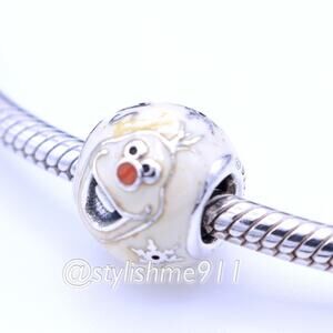 Authentic PANDORA Retired Sterling Silver Olaf Frozen Snowman Disney Charm with White Enamel - 791794ENMX