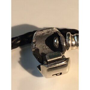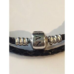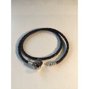 Authentic PANDORA Double BLACK Leather Bracelet ==13.78 In.