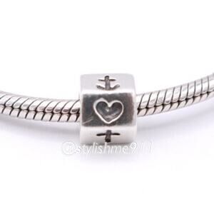 Authentic PANDORA Retired Sterling Silver Faith, Hope, and Love Religious Bead with Heart, Anchor, and Cross, 925 ALE Stamp