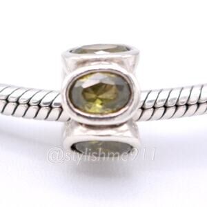 Authentic PANDORA Retired Sterling Silver with Green Zirconia Oval Lights Bead, 925 ALE