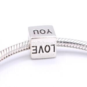 A traditional statement, but one that never gets worn out - I love you. This cube-shaped bead proclaims the simple declaration known the world over, one word on each side, and is completed with a 14K gold heart symbol.