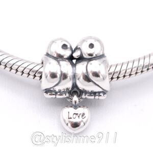 Retired Sterling Silver Love Birds Bead with Heart Dangle - 791033