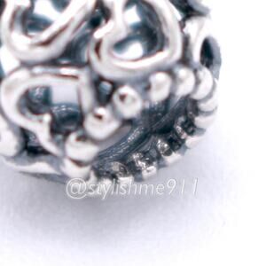 This sterling silver charm features a number of hearts, tied together to form an unbroken sphere. A perfect charm for any bracelet, the hearts stand out just enough to be noticed, but not so much as the overwhelm the charms around it.