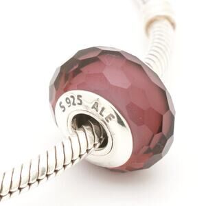 Authentic PANDORA Retired Sterling Silver Purple Fascinating Faceted Murano Glass Bead, S 925 ALE Stamp