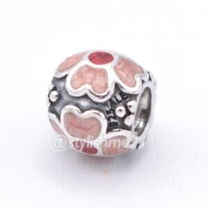Authentic PANDORA Retired Sterling Silver Daisy Flower with Red and Pink Enamel Bead, 925 ALE Stamp retire