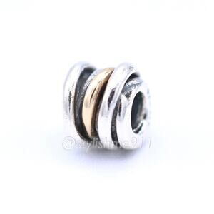 Authentic PANDORA Retired Sterling Silver and 14K Gold Ring Cluster Bead, 925 ALE Stamp