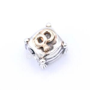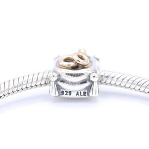 Authentic PANDORA Retired Sterling Silver and 14K Gold Romantic Union Wedding Pillow Bead with Diamond, 925 ALE Stamp