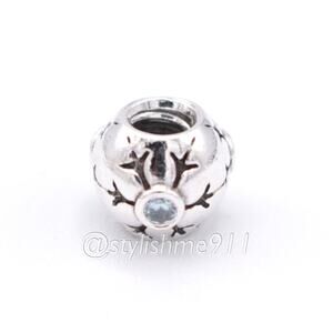 The aquamarine stone embedded in this snowflake charm adds to the appeal of this wintry bead and also represents the March birthstone.