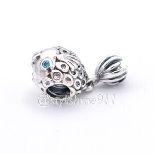 Authentic PANDORA Retired Sterling Silver Splish-Splash Fish Nautical Animal Bead with Blue Topaz, S 925 ALE Stamp