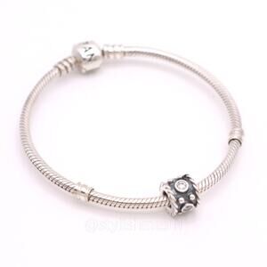 Authentic PANDORA Sterling Silver Abstract Oxidized Charm with cubic zirconia, 925 ALE Stamp / Retired